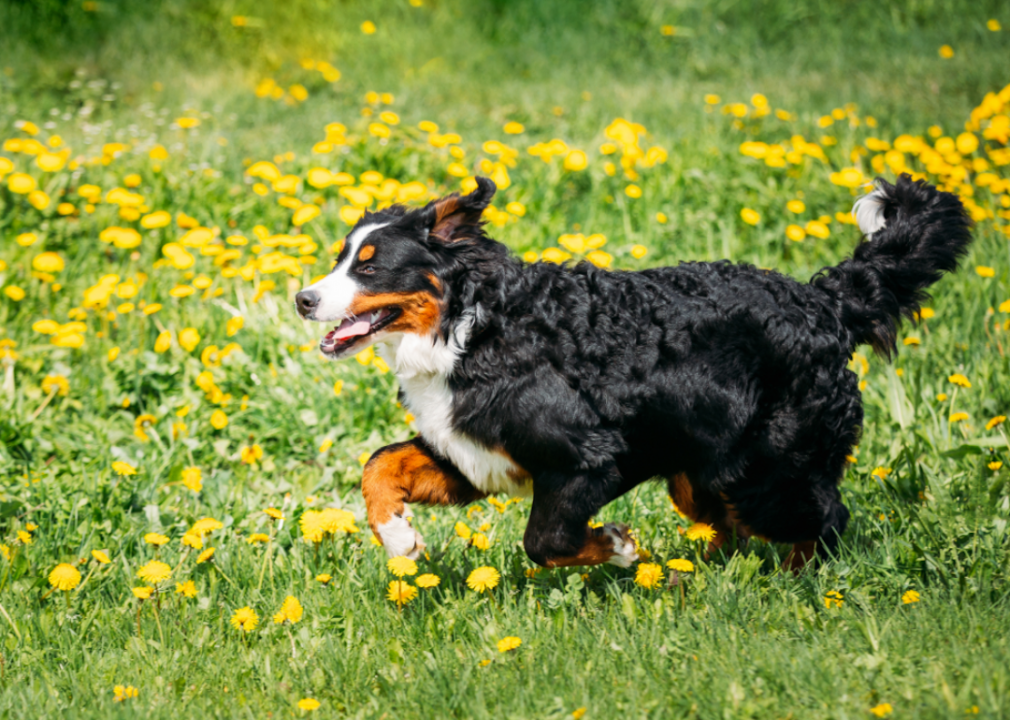 Tracing their roots to the canton of Bern in Switzerland, these giant mountain dogs were bred to live on family farms in the region. The breed is beautiful, with a long-haired coat that is black with tan markings like a Doberman, but with a white shock of chest hair and a white line down the nose. They are exceptionally friendly and love to bound about, sticking close to people.
