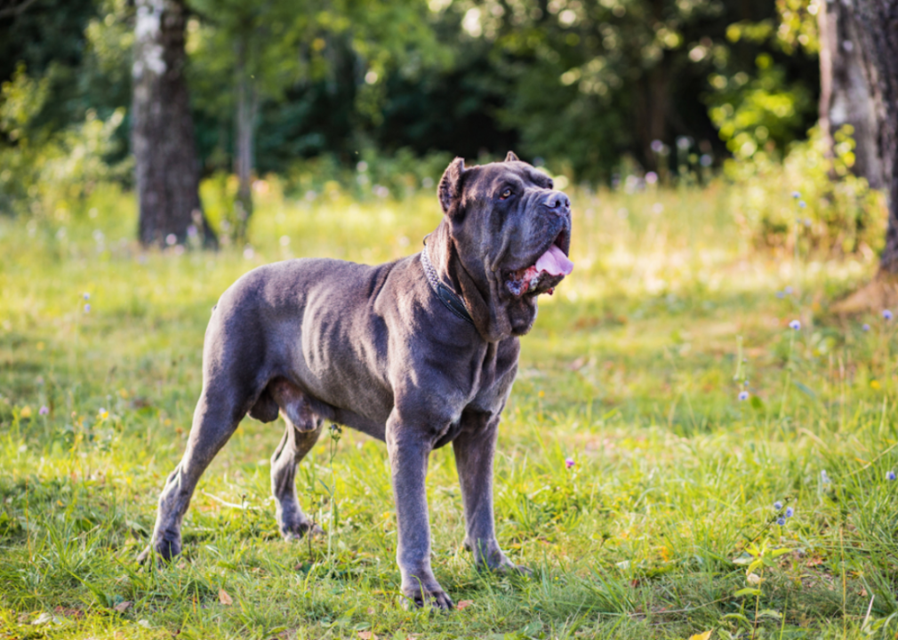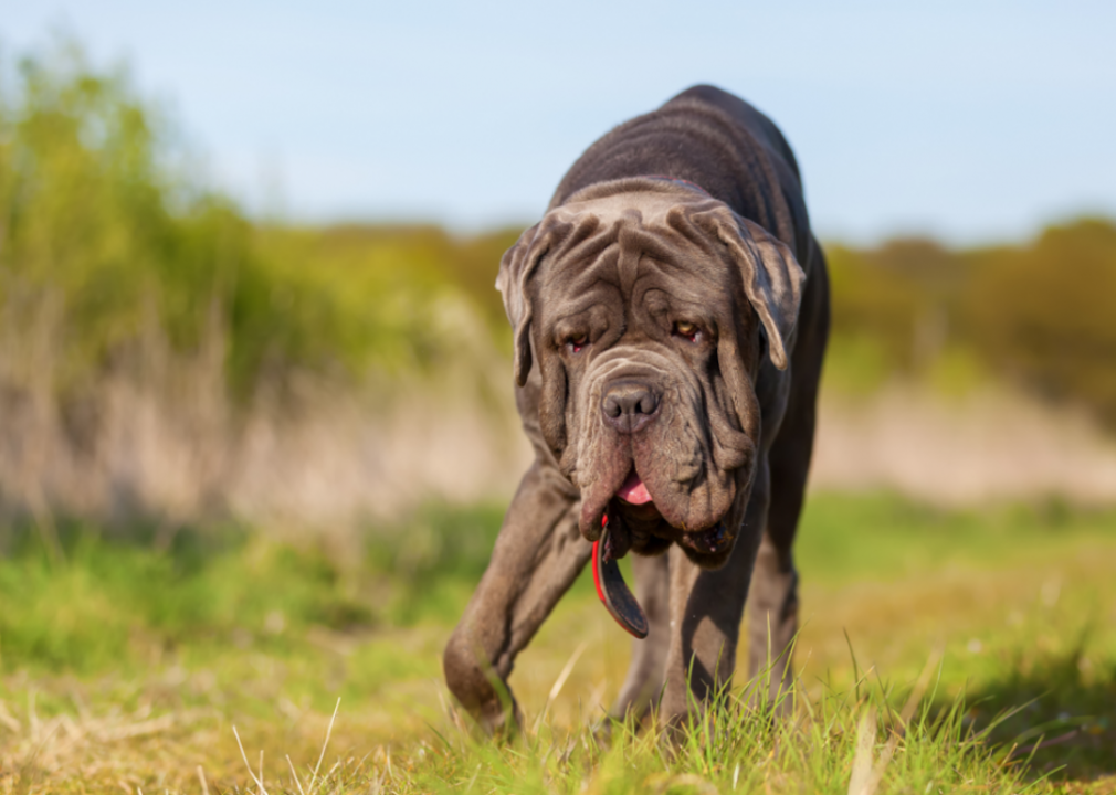 These Italian giants are fearsome guard dogs, extremely intelligent, and protective of their owners. The short-haired black dogs have saggy skin, and have a face like a pitbull with skin two sizes too big. Many believe the dog is a close descendant of the Molossus, an ancient European guard dog mentioned by both Virgil and Aristotle.