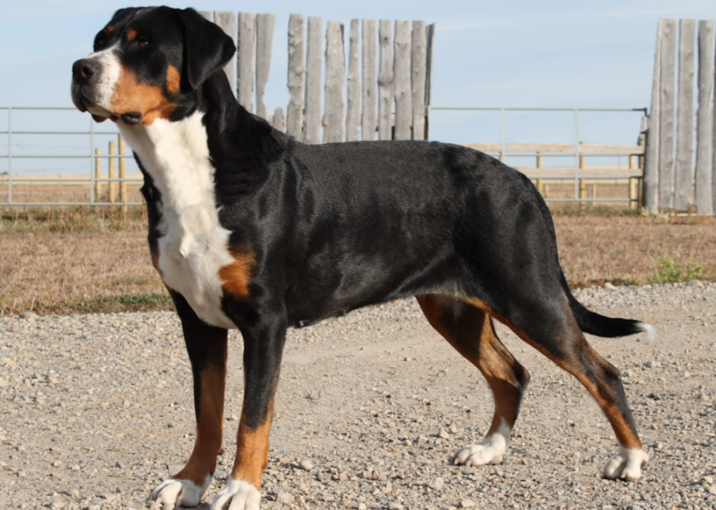The greater Swiss mountain dog has a similar coloring to the Bernese mountain dog, but is short-haired compared to its shaggy relative. The Swiss giants were farm dogs and like to work, but are also happy to laze around the house. They are friendly with kids and are good family pets.