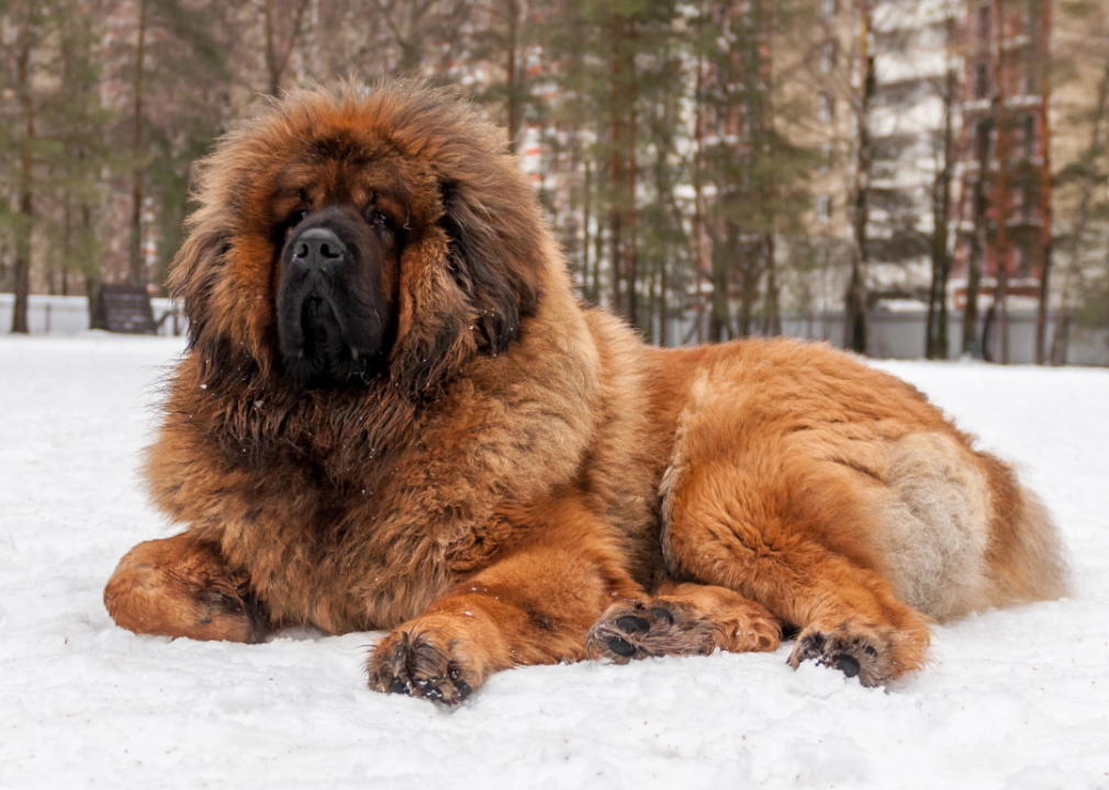 This Tibetan behemoth was bred to protect the sheep of the nomadic tribes of Asia from large predators. The black and brown dogs are distinctive for their puff of hair around their shoulders that makes it look like it’s wearing a fur parka. Trained to guard livestock, the breed is mainly nocturnal, intelligent, and stubborn, and distrustful of strangers.