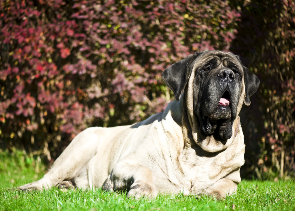 The mastiff, also known as the English mastiff, is big all-around, with a broad head, a thick chest, and a massive body. The short-haired giants can either be light fawn or dark brittle, but always have a black muzzle. Mastiff-type dogs have been around since antiquity and have always been written of in mythological terms. And for good reason. In the 1989 Guinness Book of World Records, Zorba, an English mastiff, measured an incredible 8-feet, 3-inches from nose to tail and weighed a record-breaking 343 pounds.