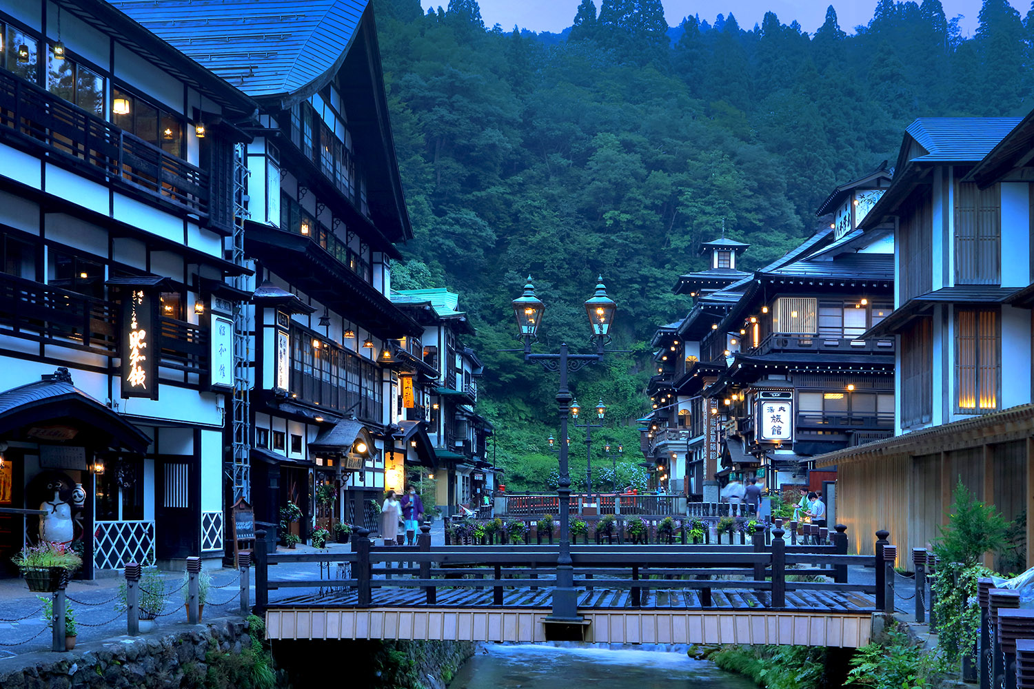 A hot spring town in a mountain valley originating from the Nobesawa Silver Mine, which flourished in the early Edo period. The townscape retains the charm of the Taisho era from about 100 years ago, with some ryokan designated as nationally registered tangible cultural properties. Known for heavy snowfall, the soft glow of gas lamps at dusk creates breathtaking scenery, offering an experience reminiscent of stepping into a storybook world.